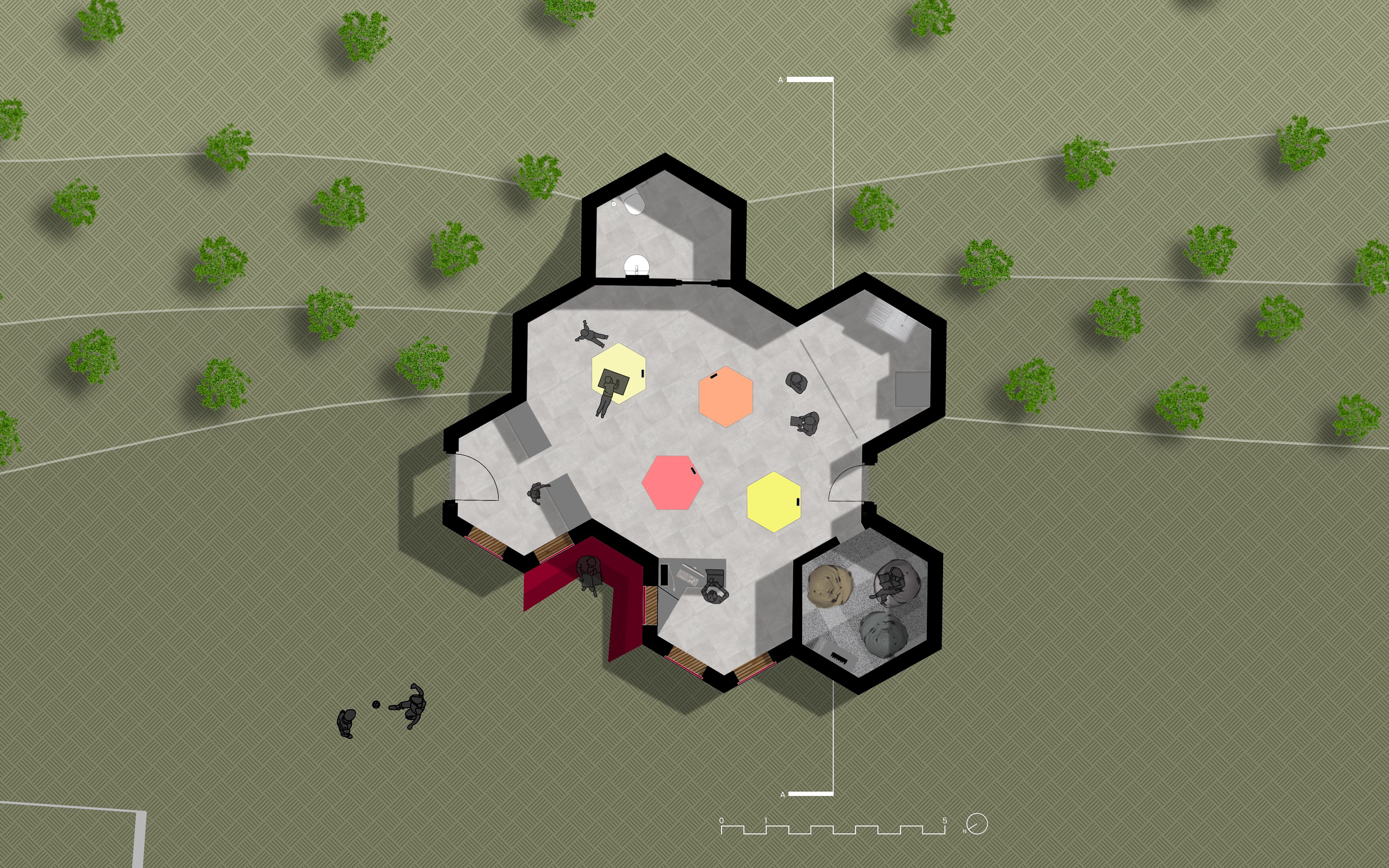 A live design intervention for RGS The Grange Prep School, shaped through client and stakeholder input, produced a building concept focused on versatility, comfort, and active learning. Guided by the RIBA Plan of Work, the project concluded with a presentation of the finalised design approach. The team designed bespoke furniture, including height-adjustable tables that rise from the floor via remote control or handle switches, maximising classroom space and accommodating different year groups.